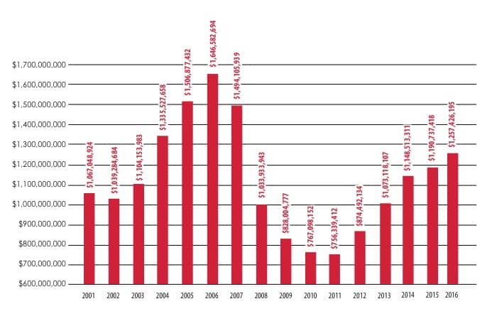 | 2017 | $6.5 billion | 32,583 |